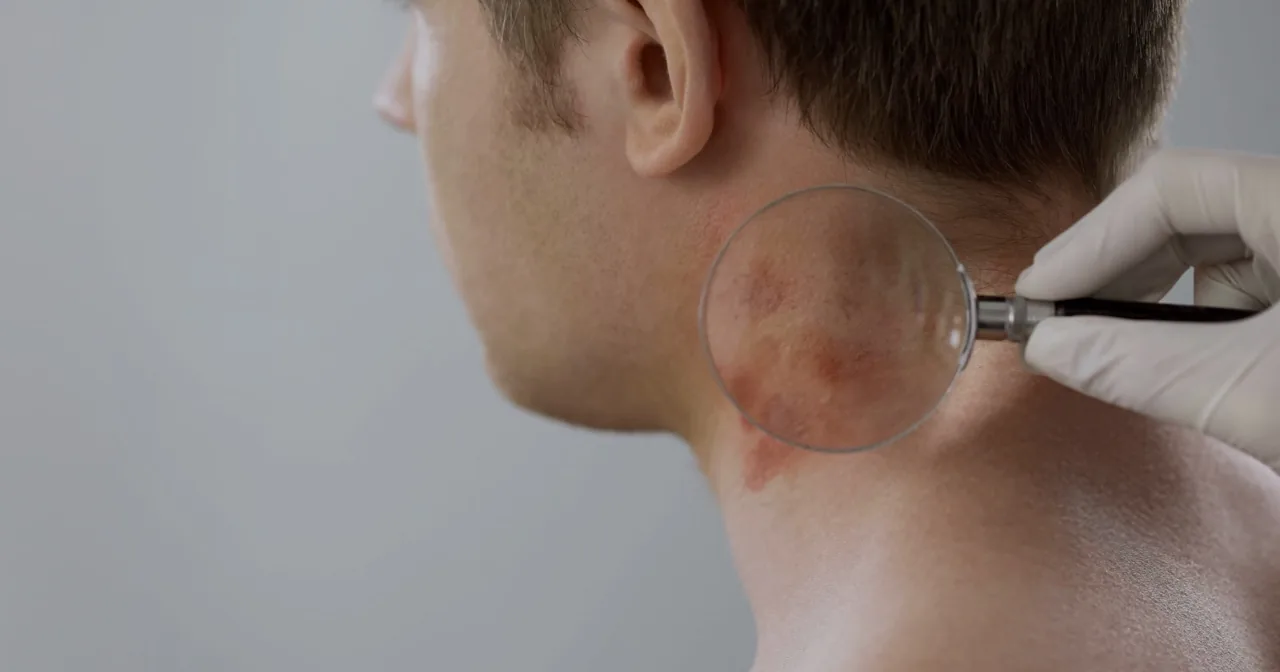 Inverse: Usually triggered by a fungal infection, this type appears as smooth patches of red, inflamed skin that does not have scales. It usually affects parts of the body where the skin folds.